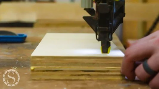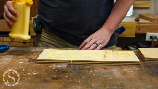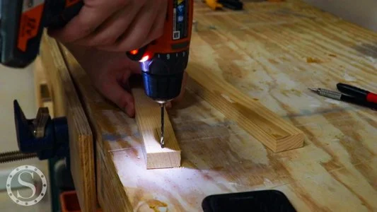 After the plywood has been cut to size, assemble the Top Offset with wood glue and brad nails. After the glue has dried and been cleaned up, remove any glue squeeze-out, then drill at least 5 pocket holes, equally spaced across the offset.