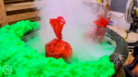 Remove the cauldron once everything looks good, but the foam is still sticky. This should let the foam stay formed to the cauldron but not stick to it, so we don’t have to do further touchups around the foam.