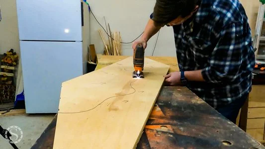 After sanding the panels to 220, I marked the curve based on the template made above. Using my jigsaw again, I cut close to the line but still a bit away from it. I didn’t want to cut it perfectly, only make it easier to clean up with the router.